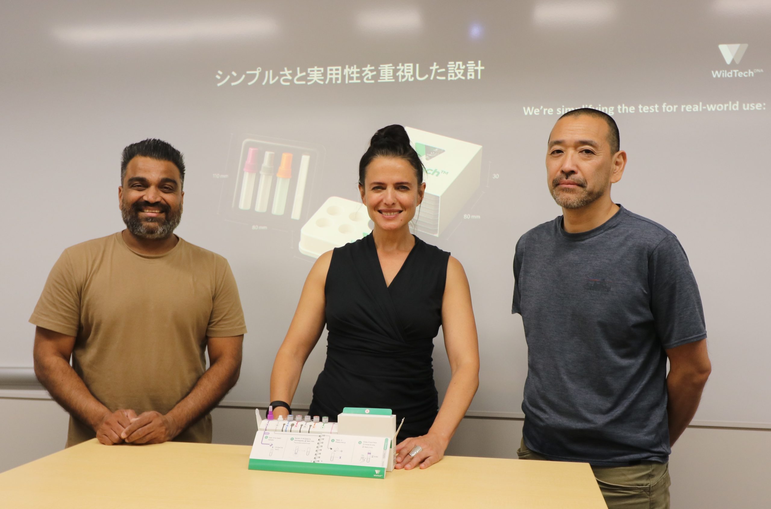 本ワークショップでは、カナダのバイオテクノロジーベンチャー企業WildtechDNA社のFounder/CEOであるNatalie Schmitt博士が、同社開発中の「現場で迅速にウナギの種を同定できるDNA判別キット」開発の経緯や活用方法について説明し、開発者であるRahul Chaudhari博士がその仕組みを実際にキットを使用した種判別を実演を交えながら解説しました。延べ約20名が参加し、参加者も実際にキットを体験した上で、技術活用に向けた意見交換も行いました。