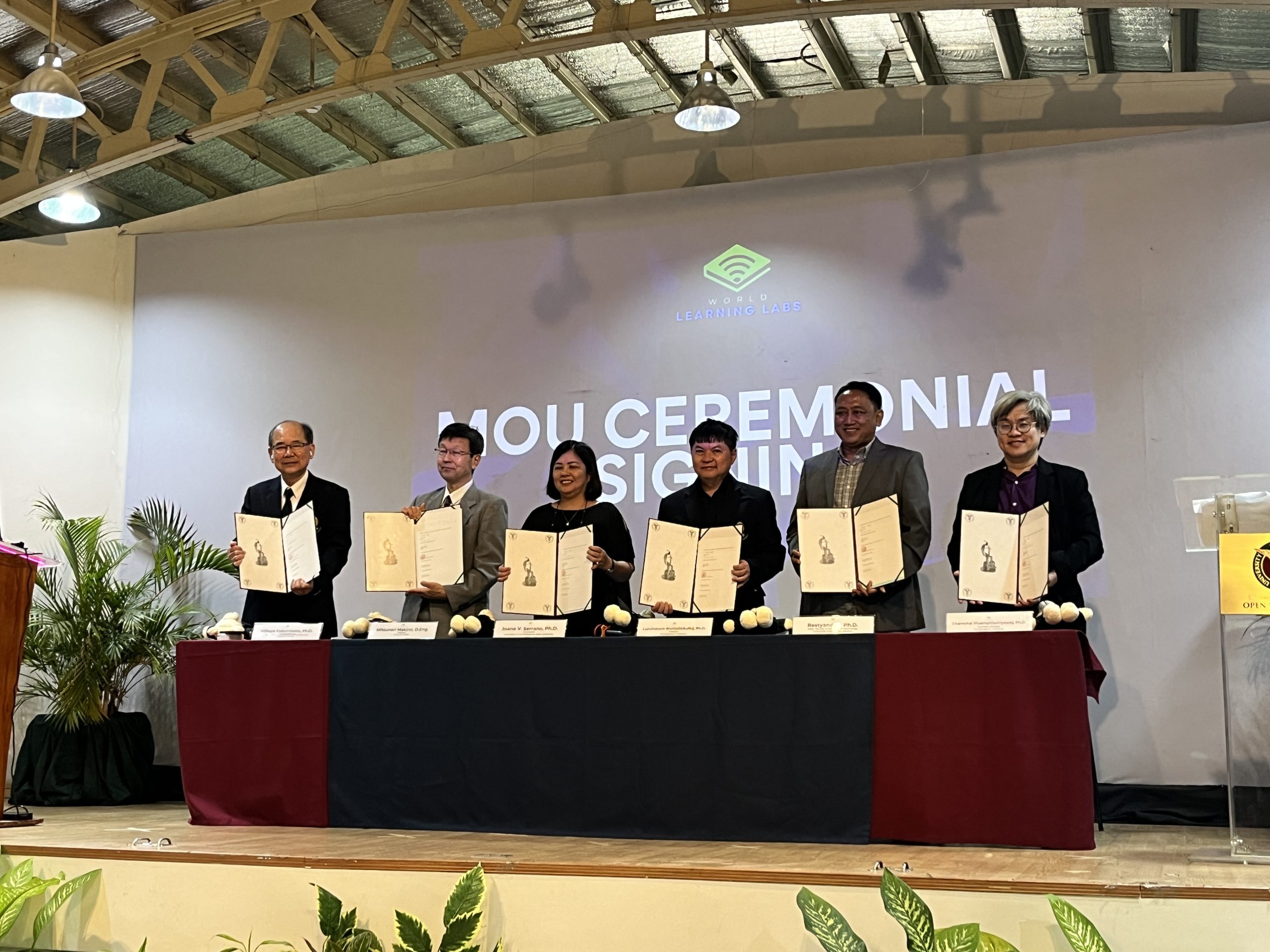 バーチャル空間で各参画機関の教育・研究コンテンツを体験できるプラットフォーム構築を目指したコンソーシアム立ち上げを目的としています。本学、チュラロンコン大学の他、シーナカリンウィロート大学(タイ)、プラボロマラーチャノック研究所(タイ)、フィリピン大学オープンユニバーシティ(フィリピン)、デュタ・ワカナ・クリスチャン大学情報科学部(インドネシア)、全6機関が参画しています。